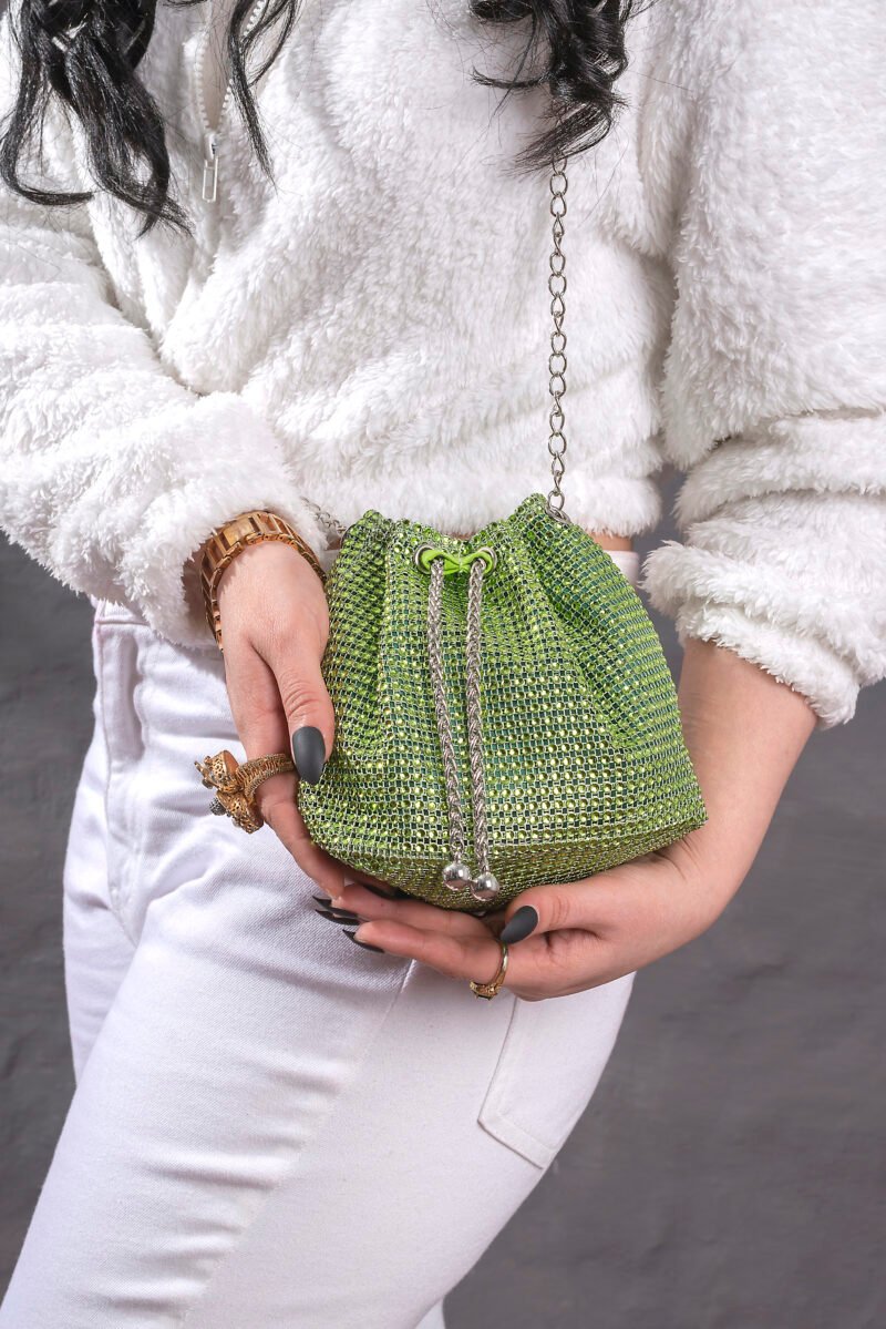 Elevate your evening ensemble with this Exquisite Green Glitter Bling Shiny Bag, the ultimate statement piece for high-glamour occasions. Designed for the woman who loves to shine, this bag features a stunning array of glittery bling and polished rhinestones that capture the light from every angle