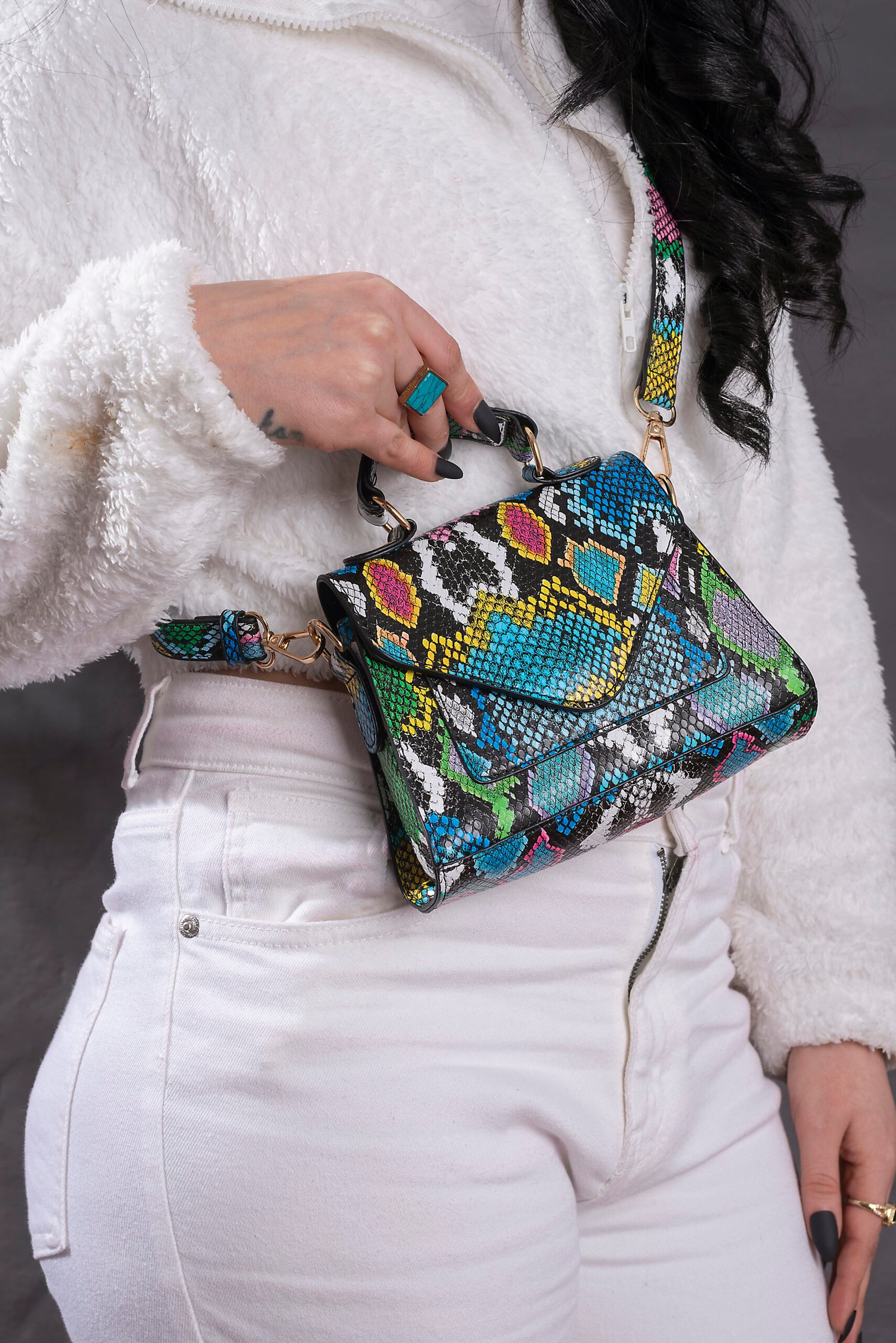 Be the first to review “Mini Snakeskin Print Flap Satchel Bag” Cancel reply