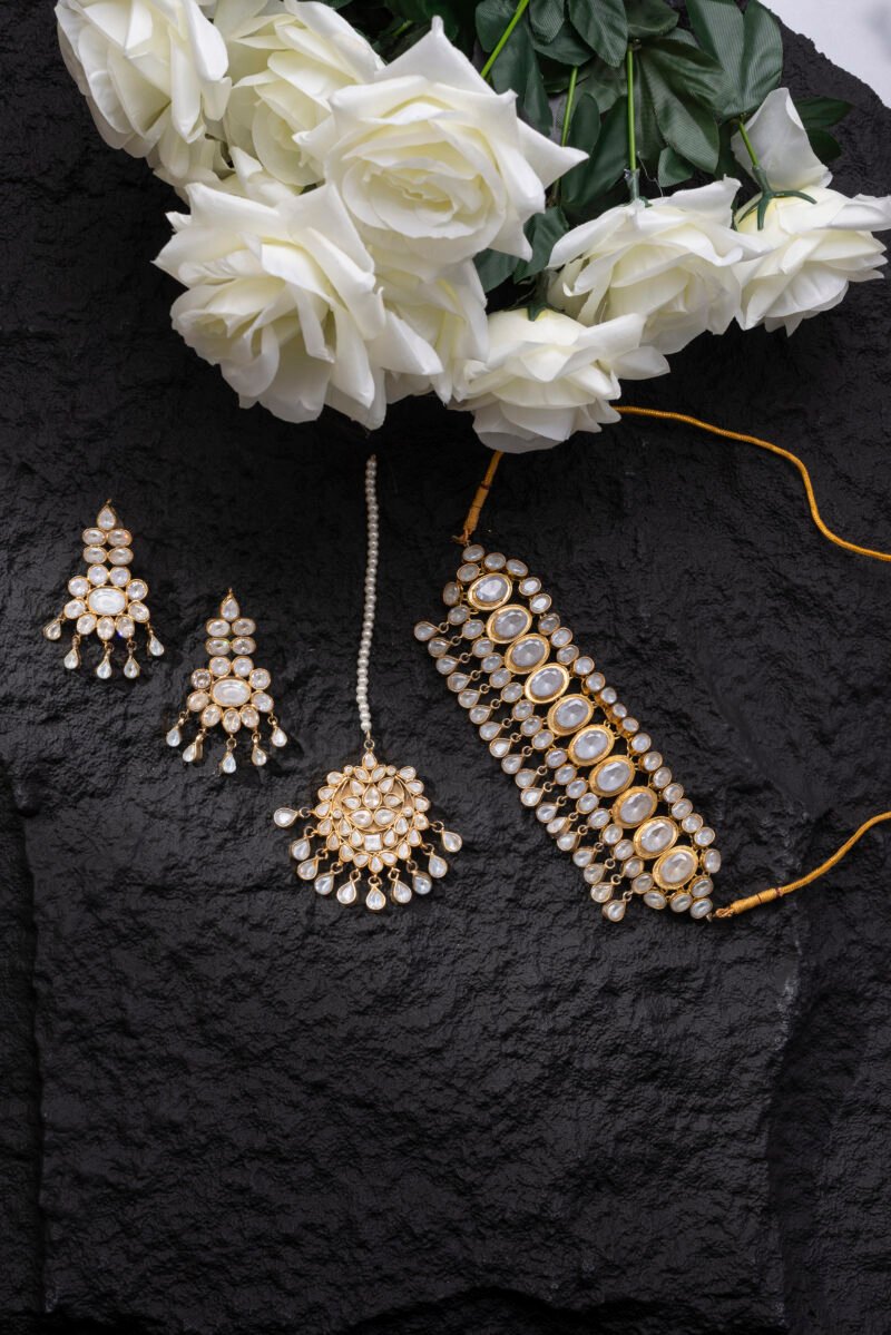 Elevate your style with this exquisite Bridal set. Featuring a stunning bridal set adds a touch of charm and sophistication to any occasion.