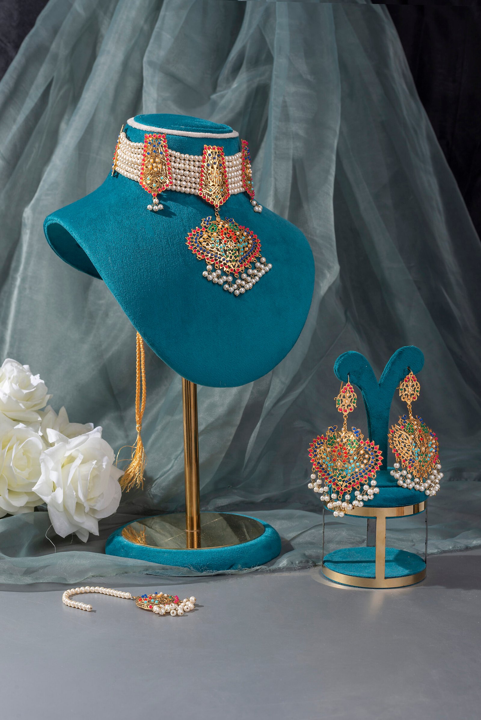 Elevate your style with this exquisite Bridal set. Featuring a stunning bridal set adds a touch of charm and sophistication to any occasion.