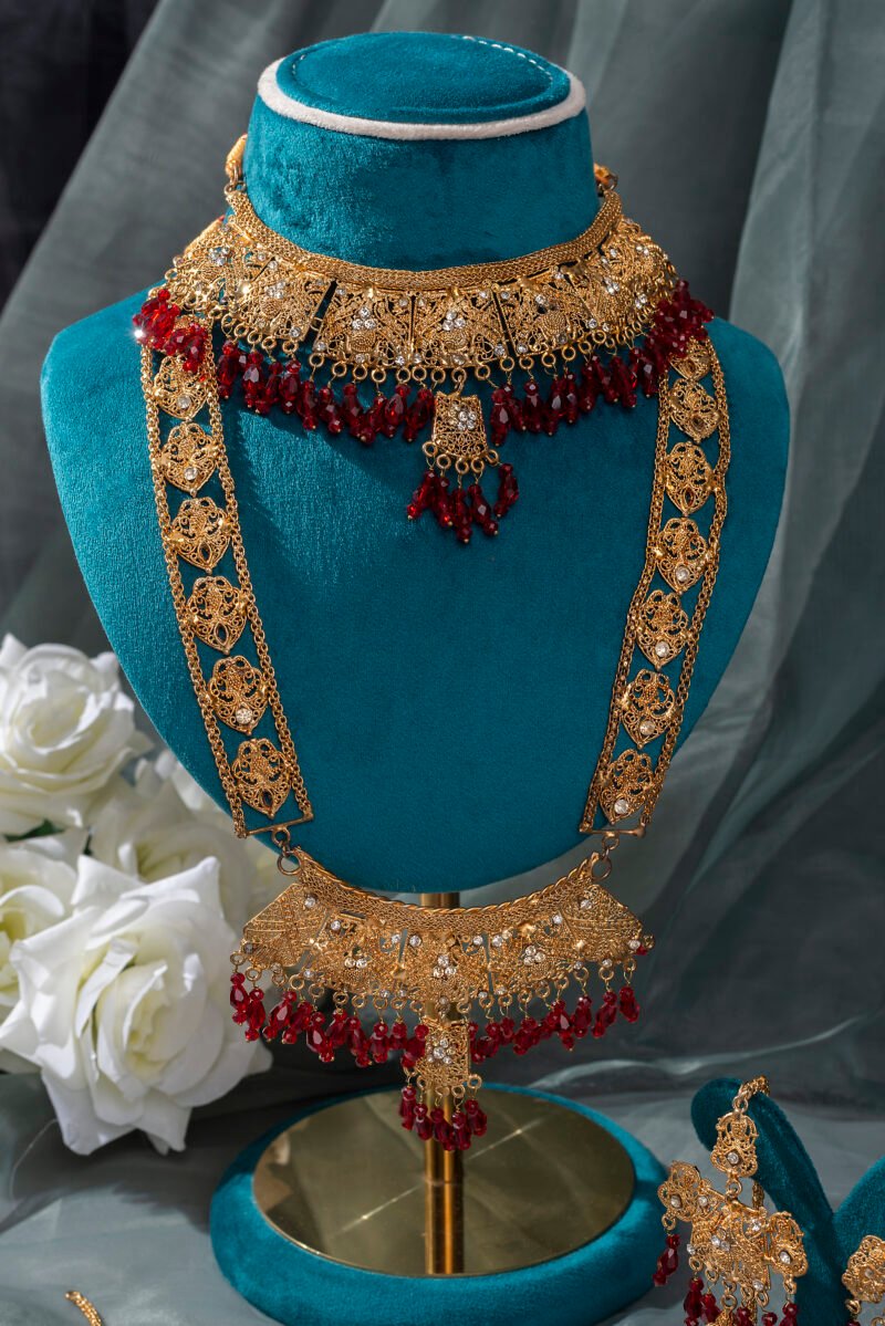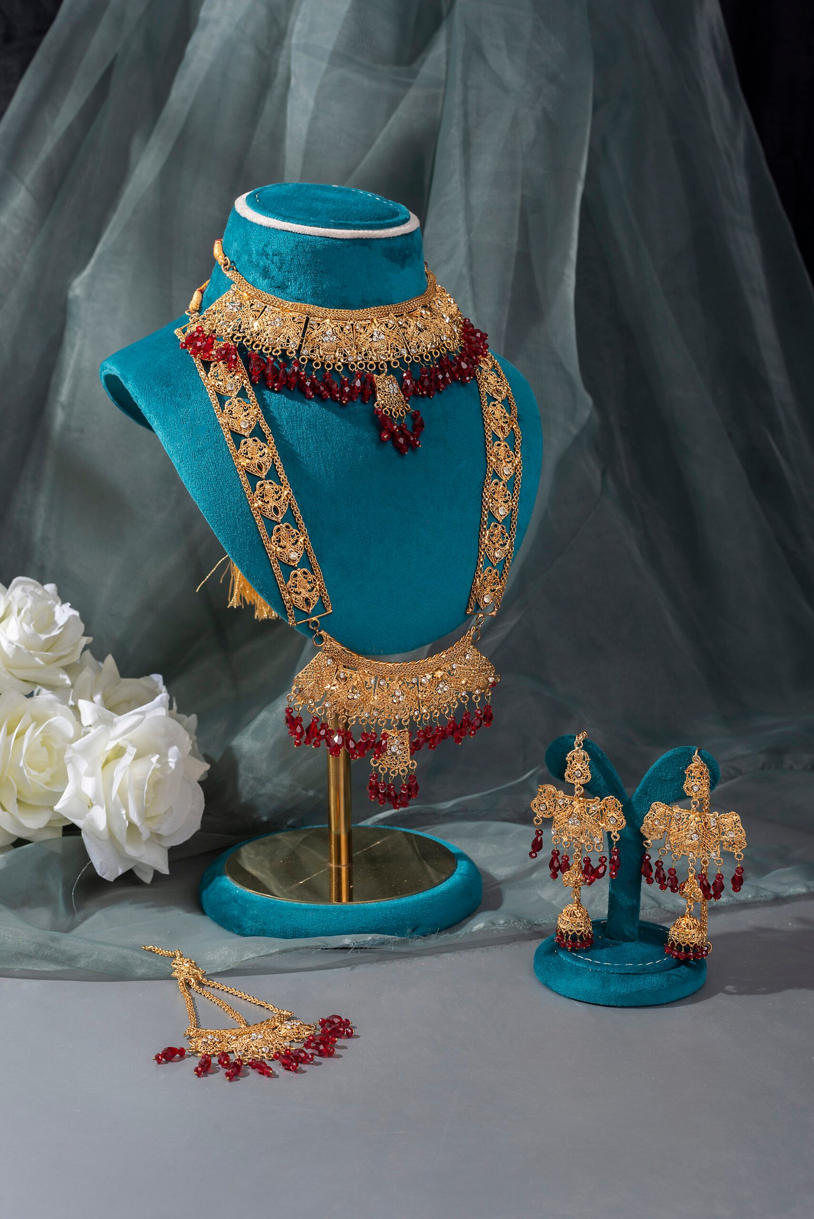 Elevate your style with this exquisite Bridal set. Featuring a stunning necklace adds a touch of charm and sophistication to any occasion.