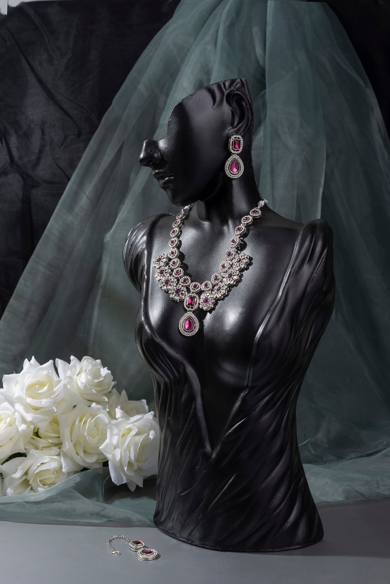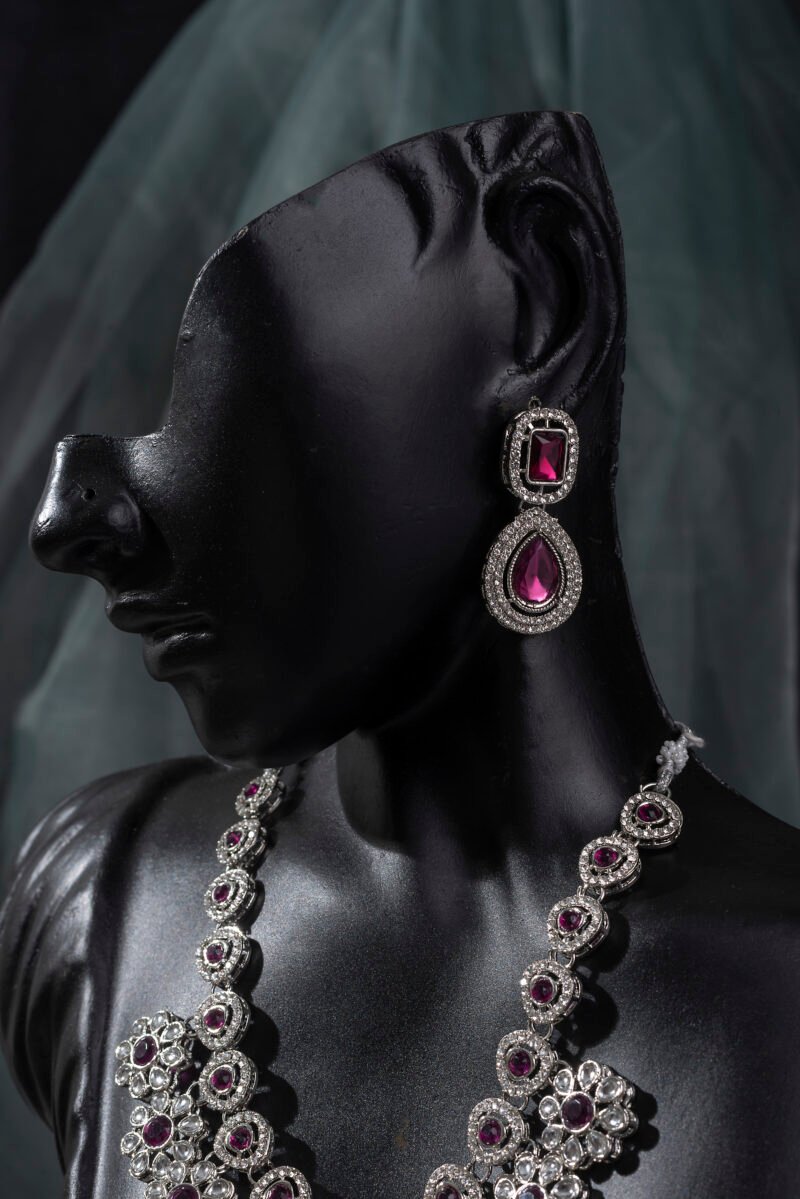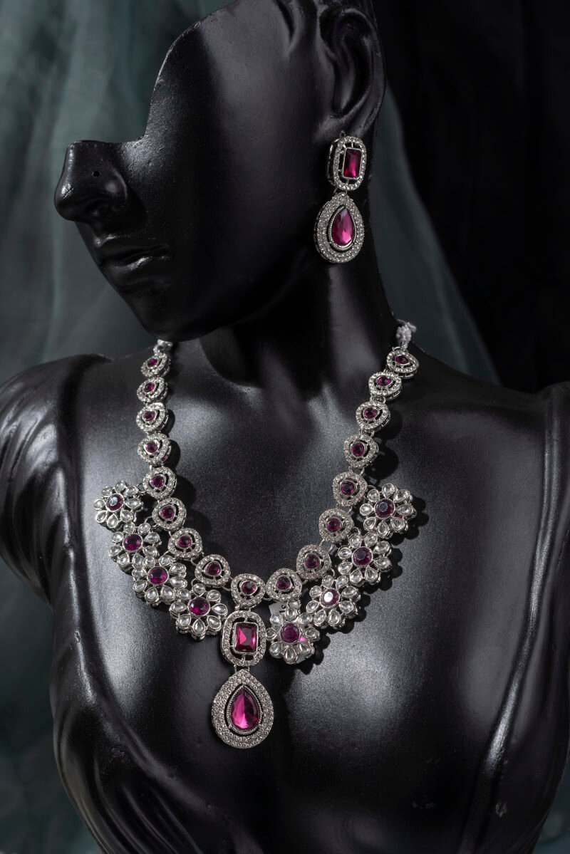 Silver Plated Traditional Kundan Stone Necklace Jewellery Set.