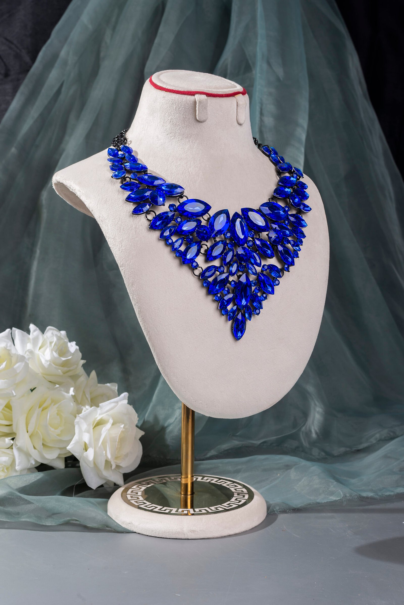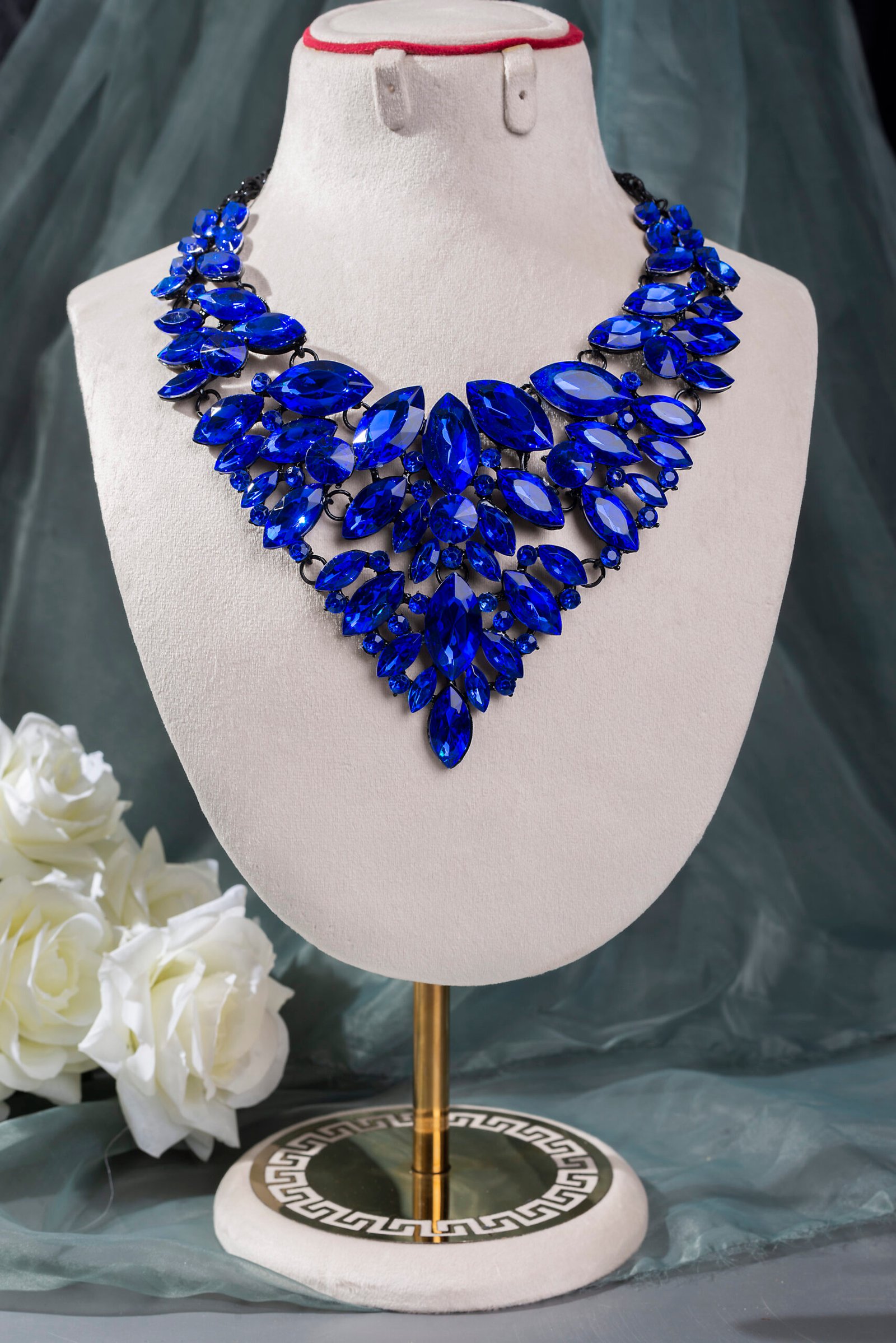 Radiant Blue Rhinestone American Diamonds Necklace.