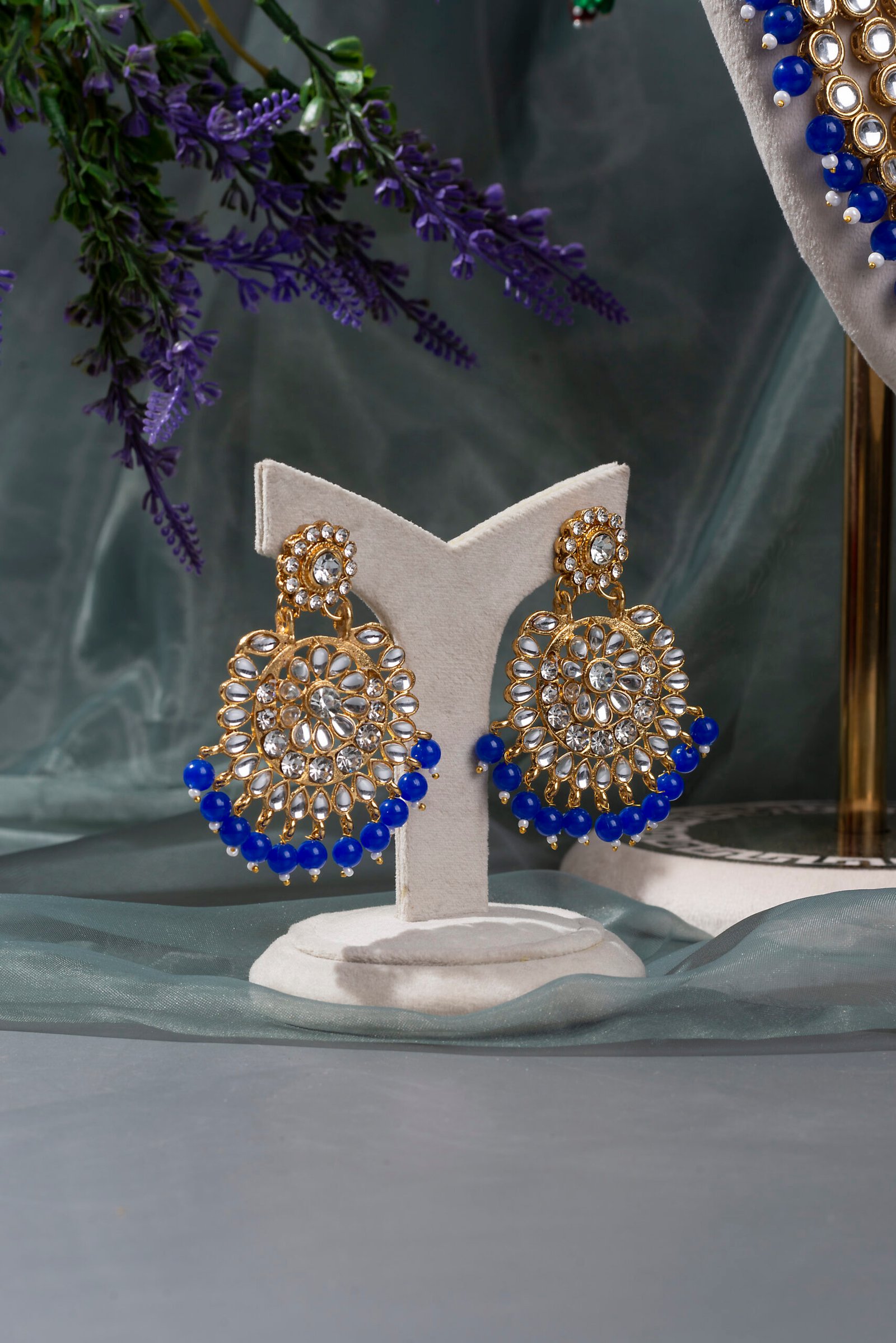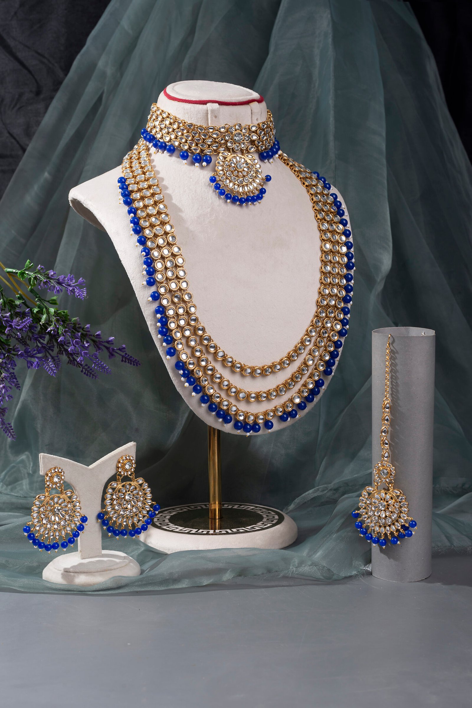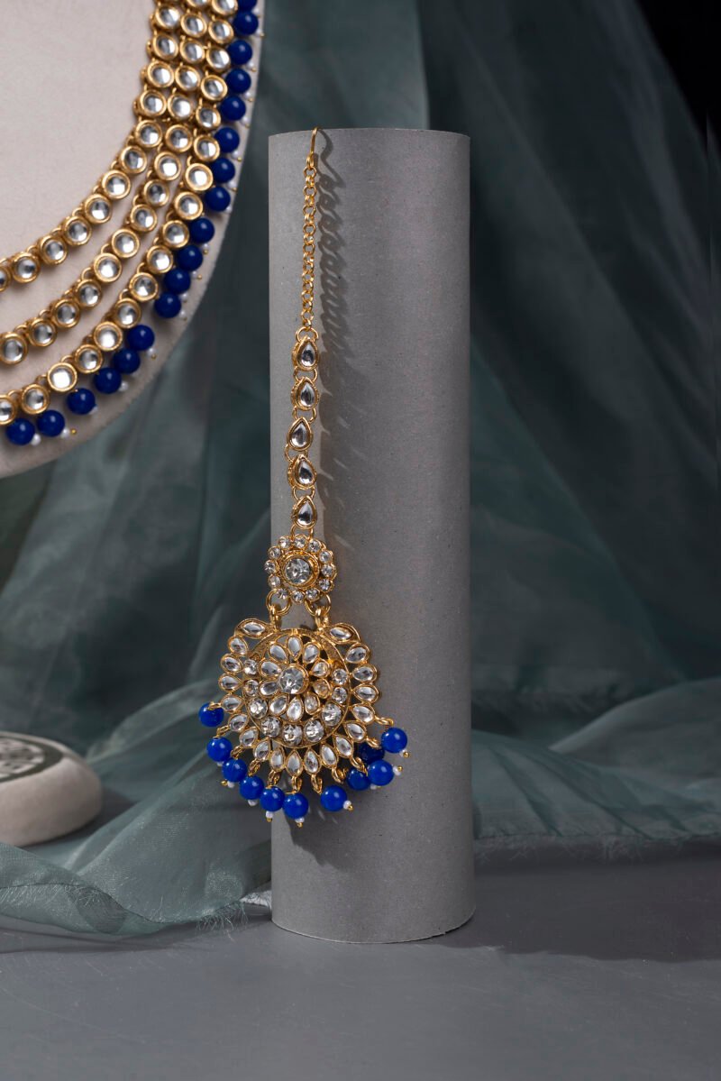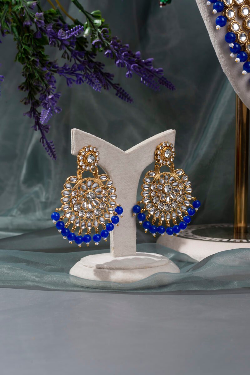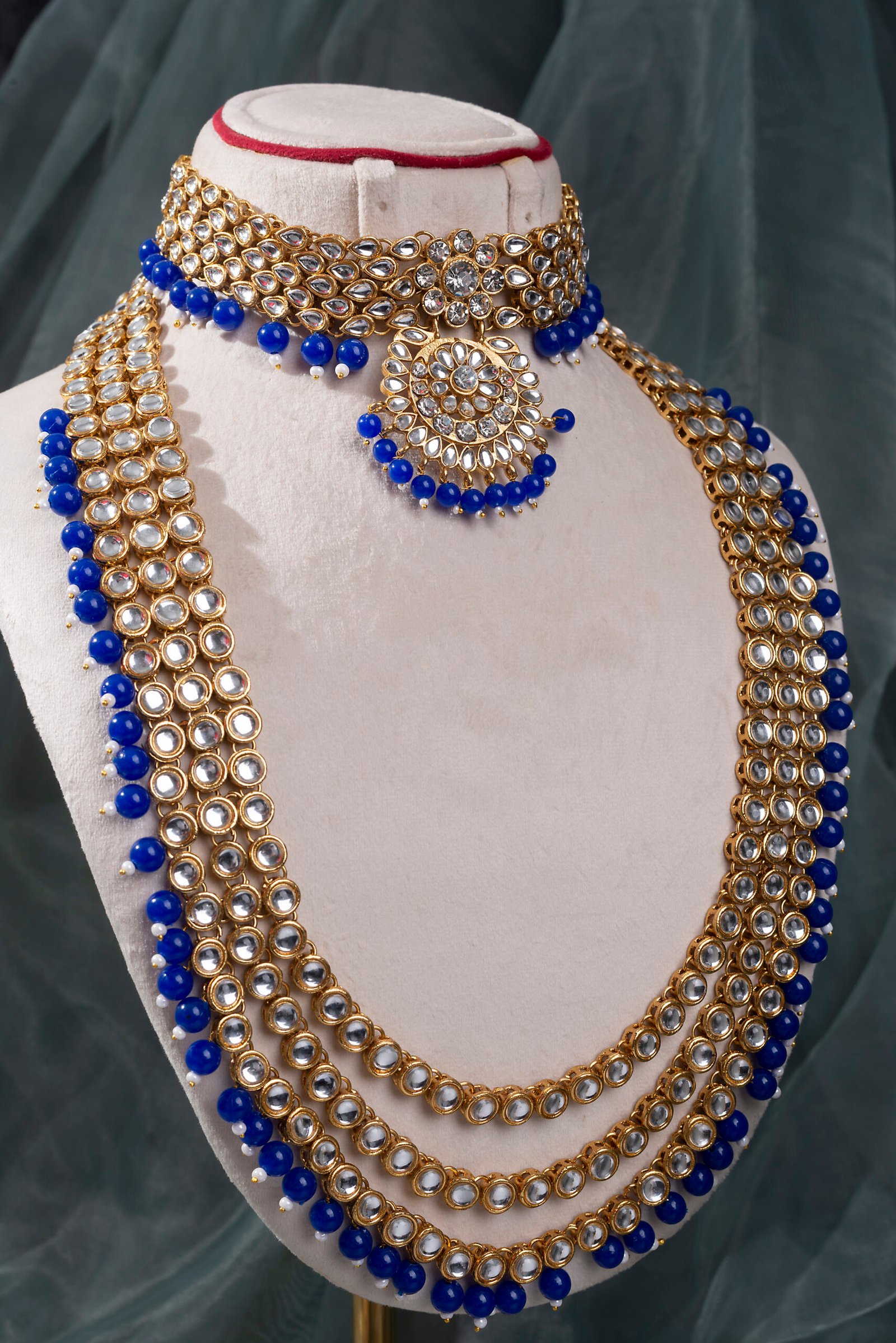 Traditional Gold Plated Kundan Bead Necklace Jewellery Set.