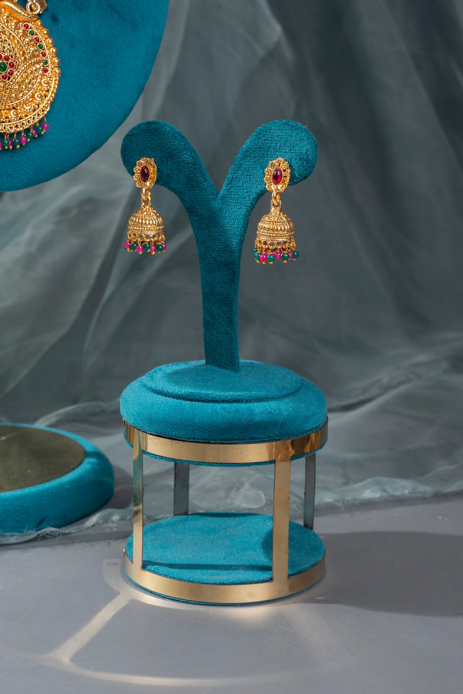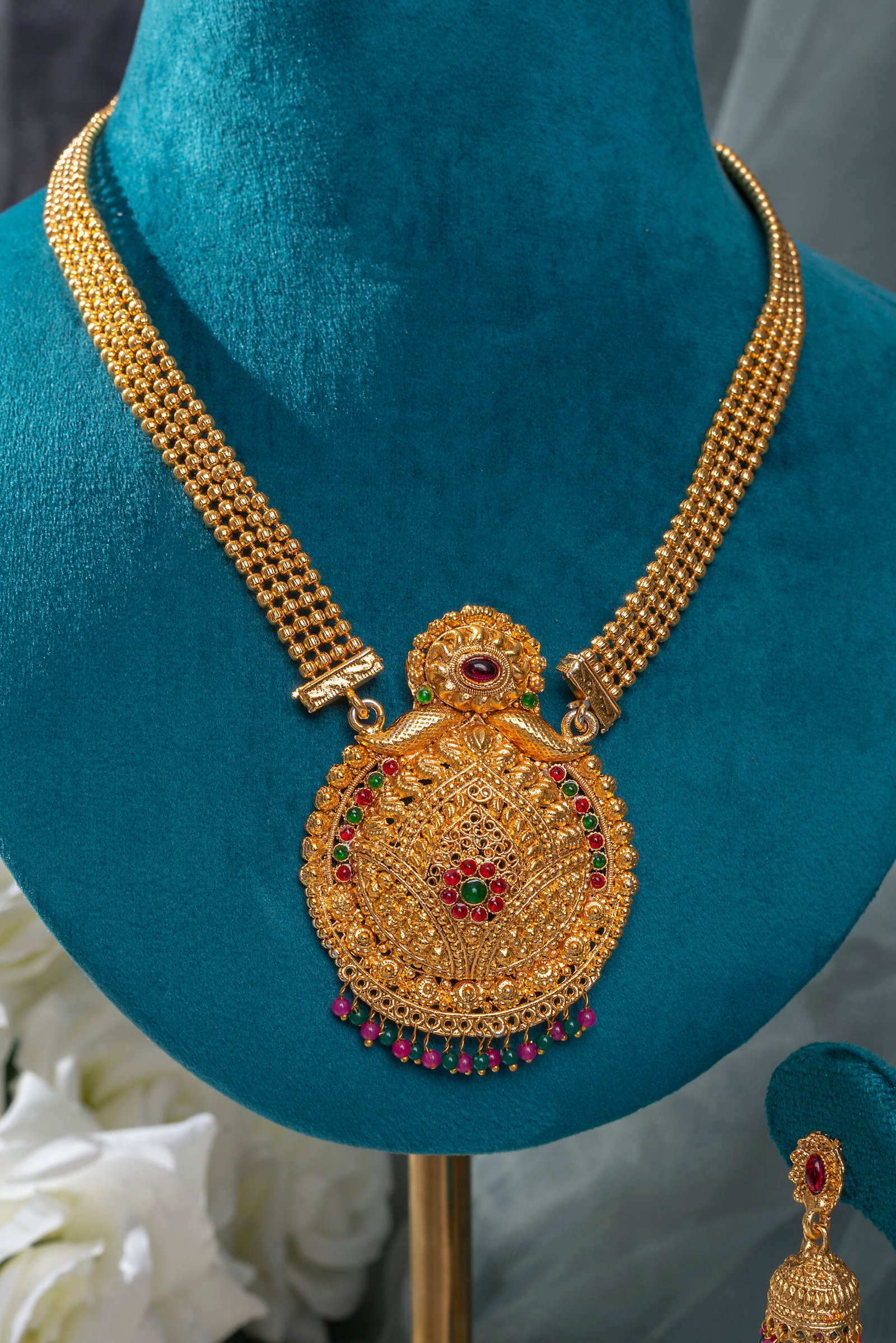 Gold Plated Synthetic Stone Studded Long Necklace Jewellery Set.