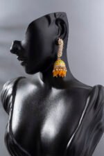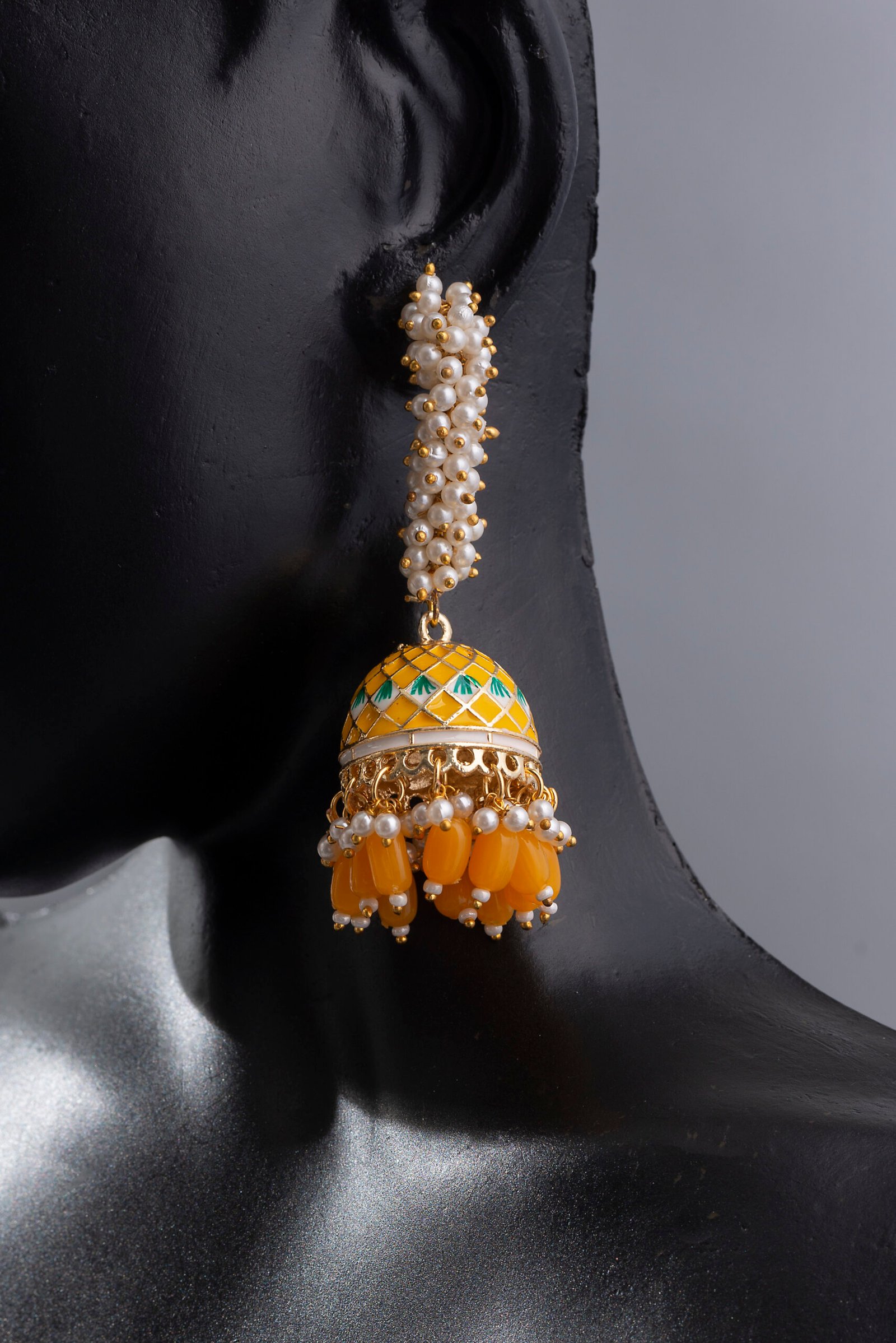 Yellow Meenakari Enamel Pearls Ethnic Jhumka Earrings for Women & Girls.