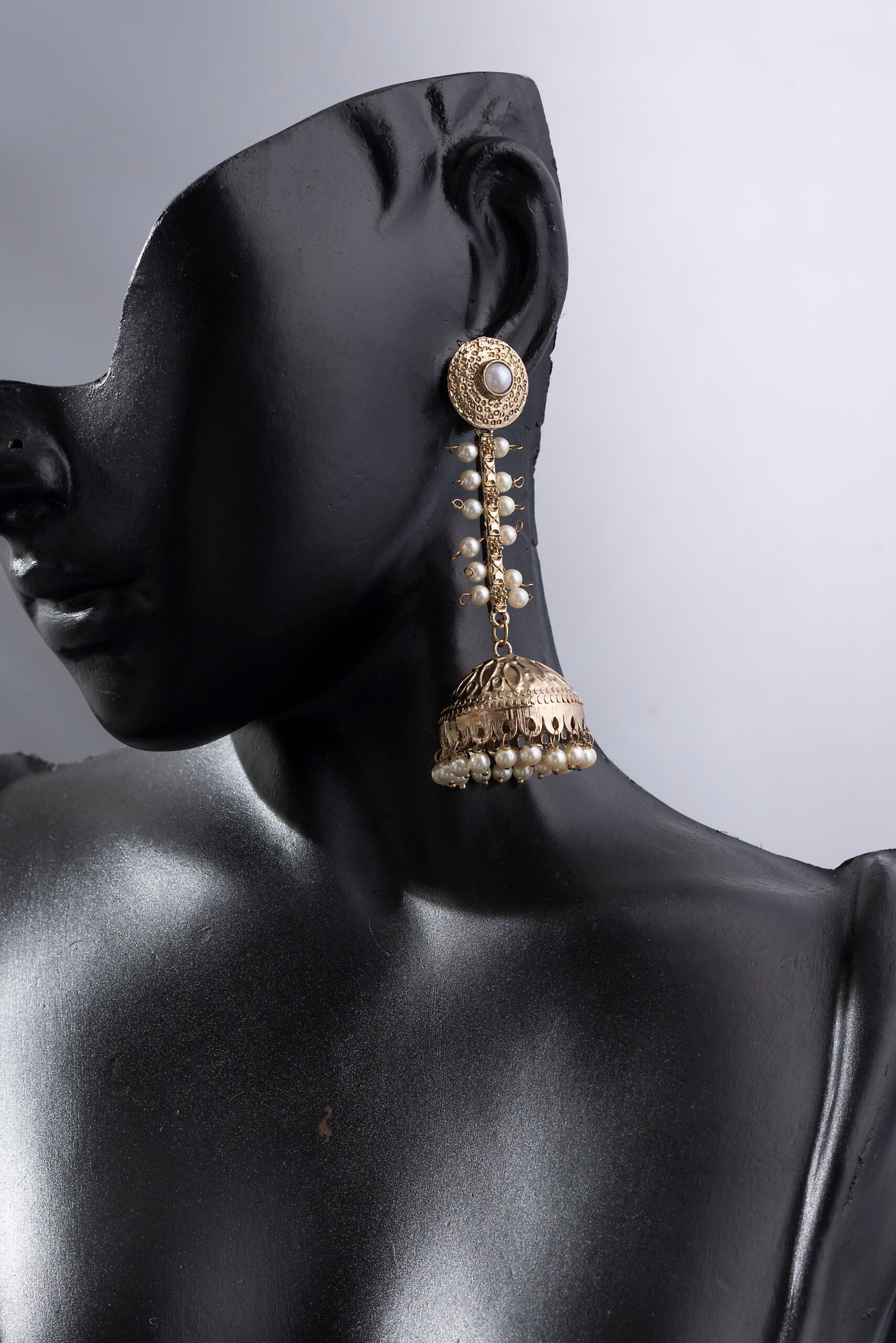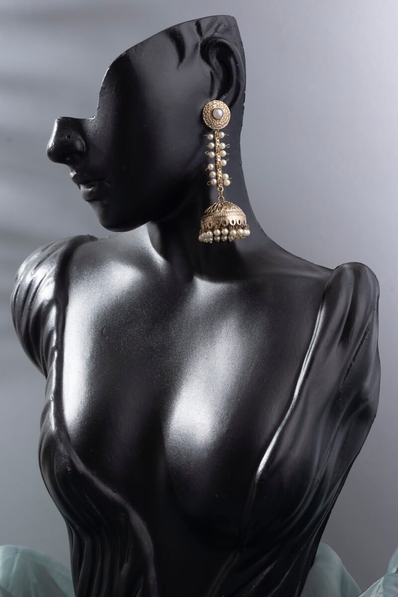 White Ethnic Wedding Dome Shape Pearl Temple Women Jhumki Earrings.