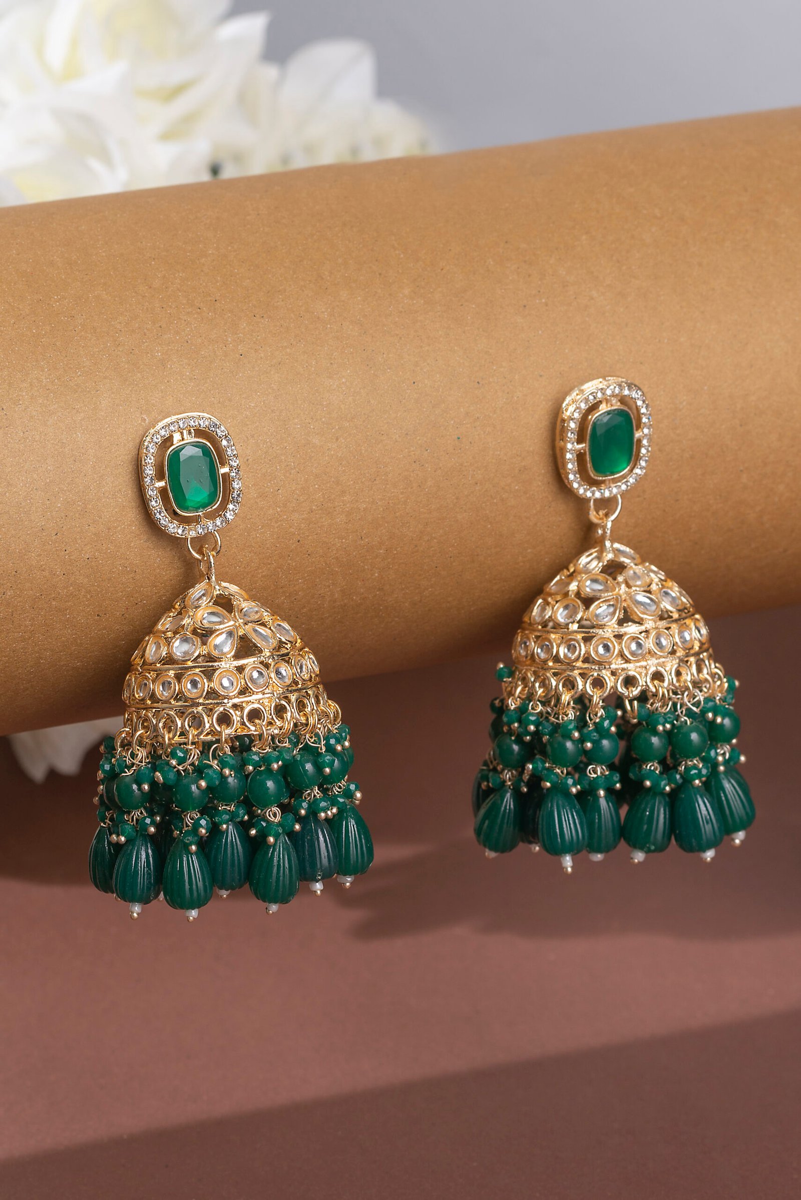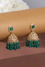 Green Cluster Beads Stone Diamonds Statement Jhumka Earrings.